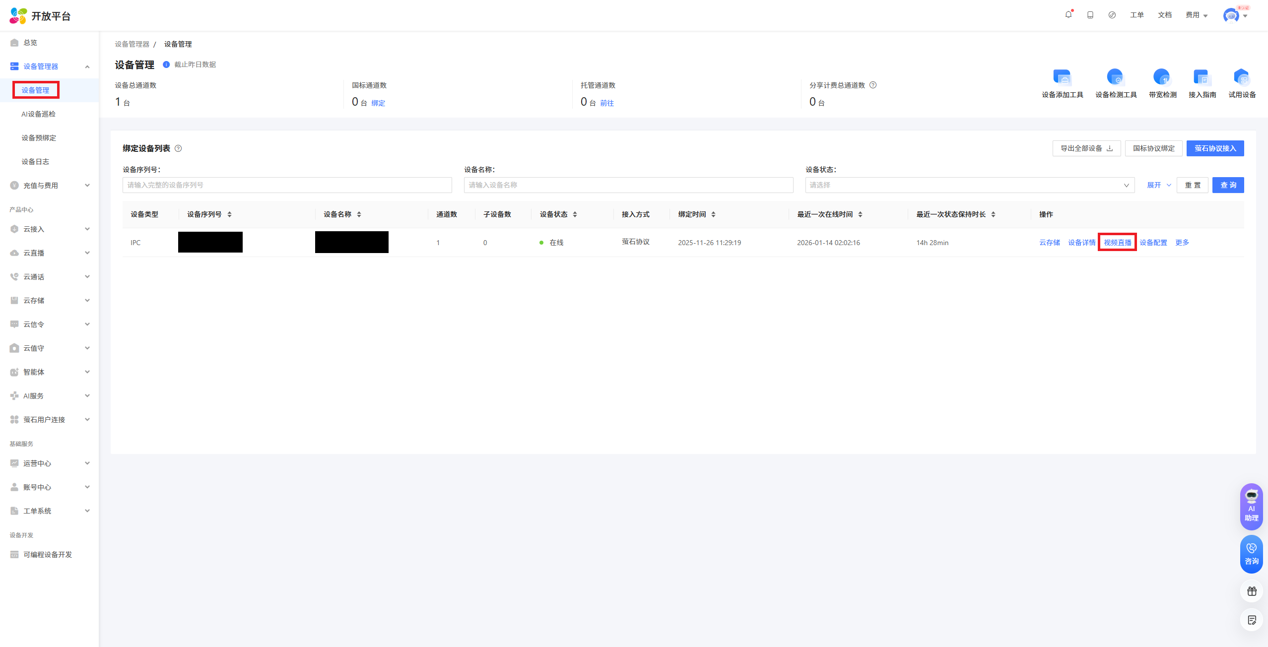 登录萤石云开放平台:https://open.ys7.com/cn/
